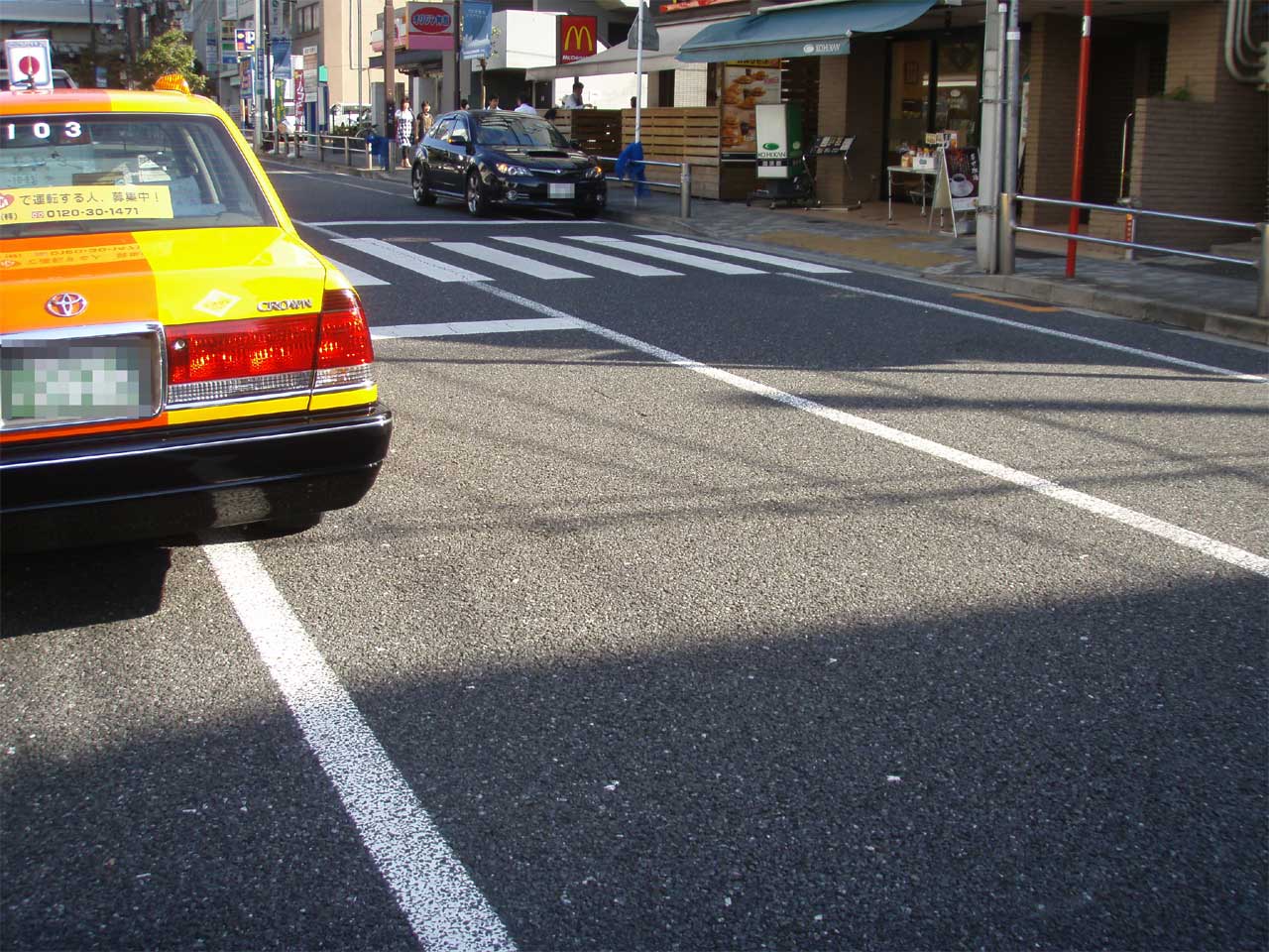 そのため、村上英子都議会議員とも相談し、区、警察、地元商店街とも協議させていただき、横断歩道前後をカラー舗装化することになりました。